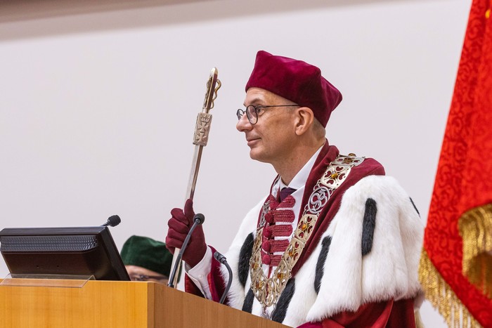 The ceremony began with the rector’s speech, in which Prof. Marcin Gruchała placed great emphasis on issues related to academic didactics, discussing the opportunities in this area, including the funding received from the Ministry of Education and Science for the implementation of the University’s Didactic Excellence project.