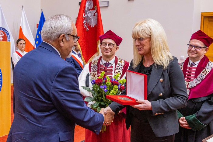 The Medical University of Gdańsk, the Scientific Foundation of Polpharma, and the Gdańsk Scientific Society have established 2020. Prize and Medal named after Roman Kaliszan, a world-class scientist, and specialist in pharmaceutical sciences, pharmacology, and analytical chemistry, the University’s rector from 2005 to 2008. The award is given annually to scholars holding at least a doctoral degree for outstanding scientific achievement in biomedical or biopharmaceutical sciences. Its winner this year was Professor Bogusław Buszewski, Head of the Department of Environmental Chemistry and Bioanalytics at Nicolaus Copernicus University in Toruń, for his achievement entitled Chromatographic and spectral study using quantitative retention-structure relationship and biological activity of preparations as drug candidates. The award was presented by the director of the Polpharma Scientific Foundation, Daniela Piotrowska, the president of the Gdansk Scientific Society, Prof. Jerzy Blazejowski, as well as the rector, Prof. Marcin Gruchała, and the vice-rector for science, Prof. Michał Markuszewski. A gift from the municipal authorities of Gdańsk on behalf of Mayor Aleksandra Dulkiewicz was presented by Vice Mayor Piotr Kraszewski.