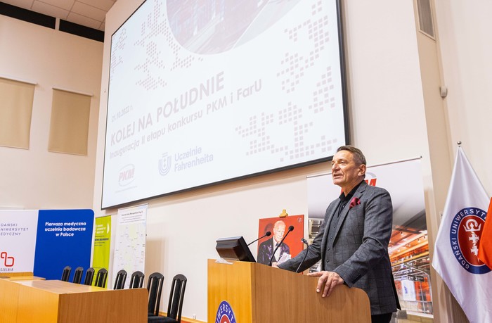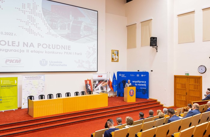 The second stage of the Railway to the South competition, jointly organized by the Fahrenheit Universities (FarU) and the Pomeranian Metropolitan Railway (PKM), was officially inaugurated. The ceremony took place on October 21 at the Auditorium Primum named after Prof. Olgierd Narkiewicz at the Atheneum Gedanense Novum. The university coordinator of the project on behalf of the MUG is Maciej Tankiewicz, Eng.D. of the Division of Environmental Toxicology of the MUG, who additionally prepared a workshop for the participants of the competition as part of the event.