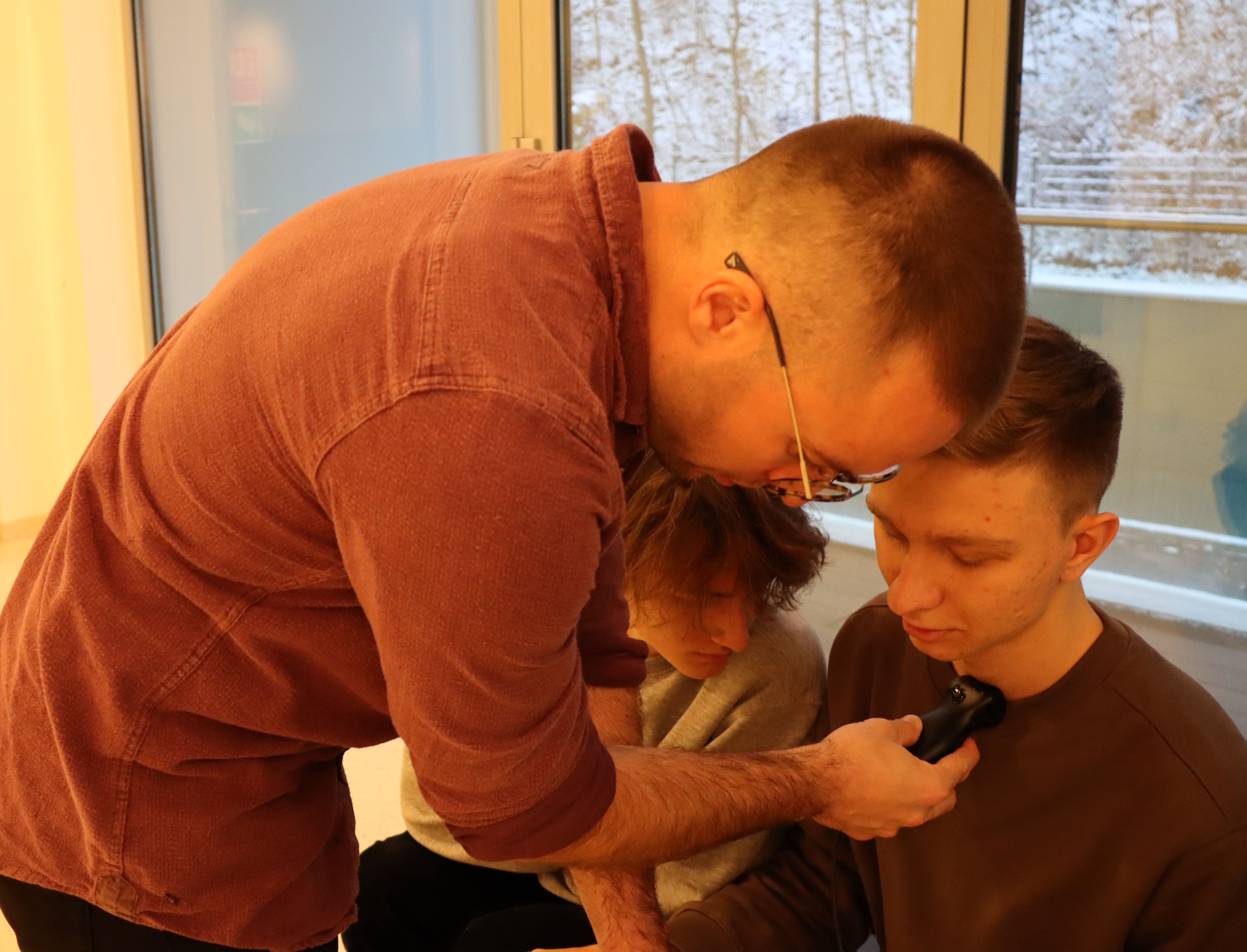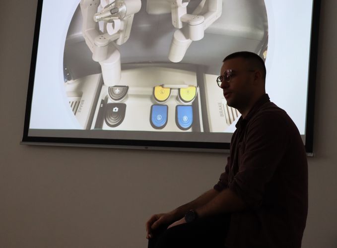 Next, Piotr Spychalski, Ph.D. of the Department of General, Endocrine and Transplant Surgery introduced future university students to the realities of his daily work. On the one hand, it was an opportunity to dispel many myths associated with the medical profession, and on the other hand, to learn about interesting clinical cases in surgery and new tools that are used in this field of medicine. Spychalski, Ph.D. also introduced the participants to his research interests and told them about his scientific area of activity. In addition, the classes on surgery were largely practical. After learning basic surgical techniques and instruments under the watchful eye of Piotr Spychalski, Ph.D. and Artur Furga, M.D., participants practiced placing the first surgical sutures. They were also able to try their hand at ultrasound and practice on a laparoscopic trainer.