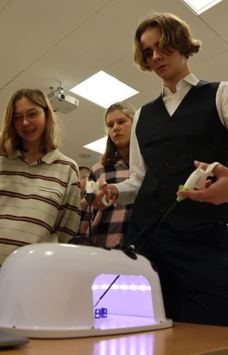 The participants began their adventure with the Medical University of Gdańsk in the anatomy labs of the Department of Anatomy and Neurobiology. Dr Habil. Sławomir Wójcik prepared activities for them that included working with classical slides, as well as modern tools such as an interactive anatomy table. Students learned how slides are prepared, which then serve many generations of students, and then, using them, discussed the structure of selected human organs and their functions in detail.
