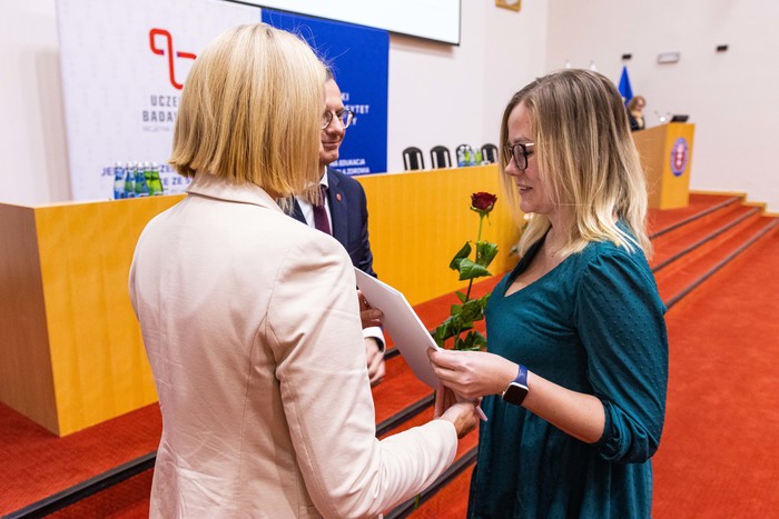 – I heartily congratulate all of you. I think that the very positive grade is a source of satisfaction for you and the reward itself is being well rated by students – emphasized Prof. Agnieszka Zimmermann, Vice-Rector for the Quality of Teaching. – Through the survey, we engage students to express their opinion. This builds not only a sense of duty, but also the power of causation. By expressing their opinions and assessments, they inform us about various problems, thanks to which we can together change the picture of events and contribute to the quality of education at our University.
