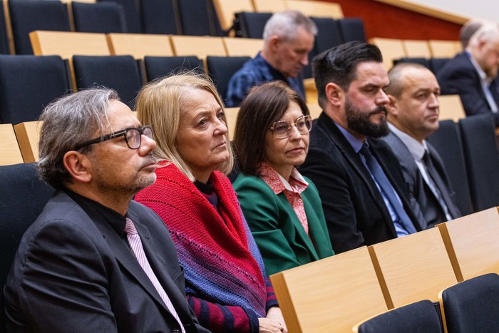 The event was attended by: Rector Prof. Marcin Gruchała, Vice-Rector for the Quality of Teaching Dr. Habil. Agnieszka Zimmermann, Assoc. Prof., Vice-Rector for Development and Education Prof. Jacek Bigda, Dean of the Faculty of Medicine Prof. Radosław Owczuk, Dean of the Faculty of Pharmacy Prof. Wojciech Kamysz and the Deputy-Deans group: Dr. Habil Magdalena Błażek, Assoc. Prof., Prof. Aida Kusiak, Dr/ Habil. Magdalena Prokopowicz, Assoc. Prof., Dr. Habil. Bartosz Wielgomas, Assoc. Prof. and Prof. Paweł Zagożdżon. The MUG’s Student Government was represented by: Secretary and Treasurer Jakub Deleżuch as well as Michał Bystram and Dariusz Rystwej.
