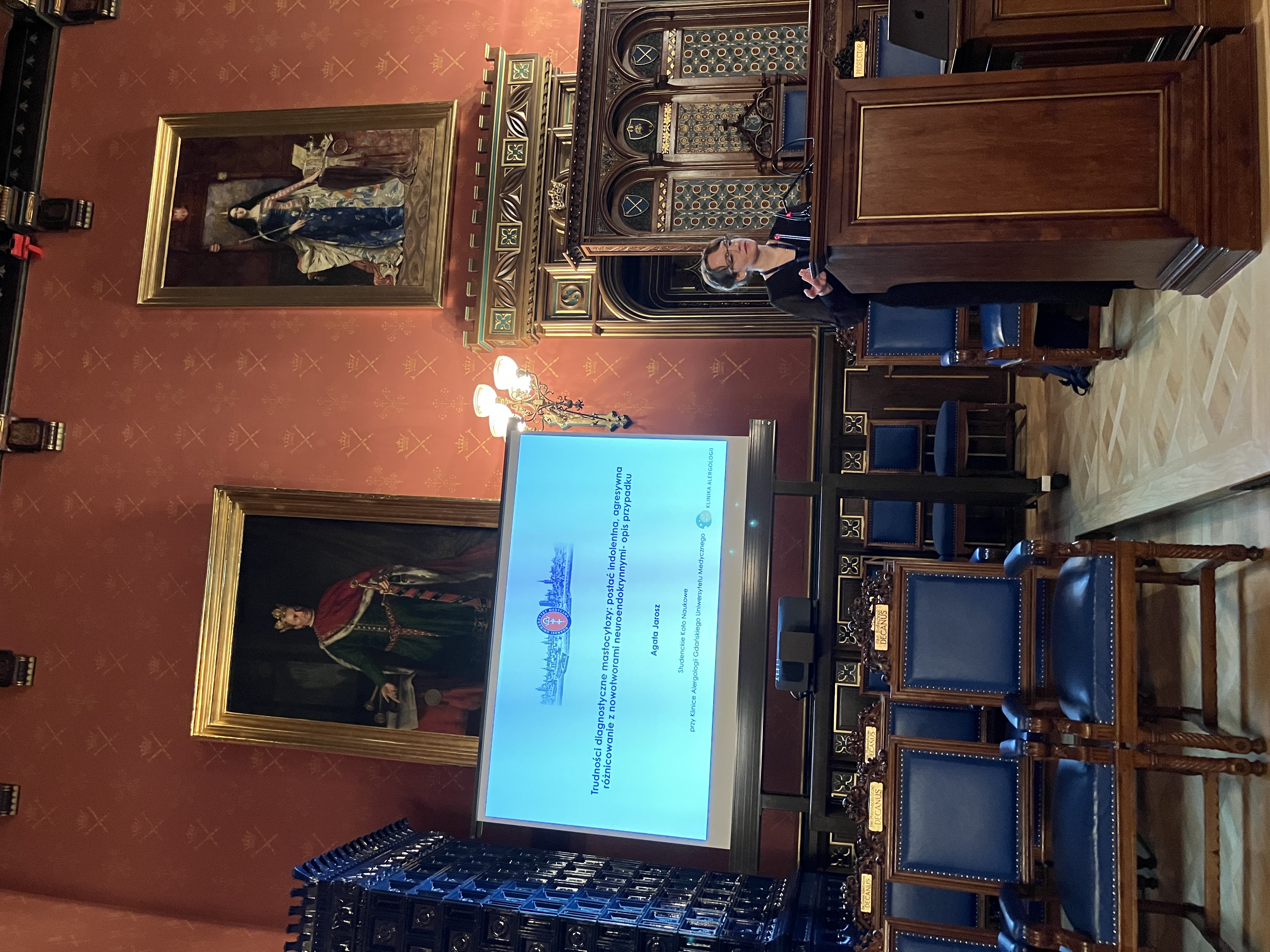 In session Case Report I 1st place took Agata Jarosz (5th year), Vice-President of the SSC by the Division of Allergology. Work entitled Trudności diagnostyczne mastocytozy: postać indolentna, agresywna, różnicowanie z nowotworami neuroendokrynnymi – opis przypadku (Diagnostic difficulties of mastocytosis: indolent, aggressive form, differentiation from neuroendocrine tumors – a case report), which paid special attention to problems present during the diagnosis of mastocytosis and classification of its type was prepared under the care of specialists from the Division of Allergology: Unit’s Head Prof. Marek Niedoszytko and Jan Romantowski, Ph.D.