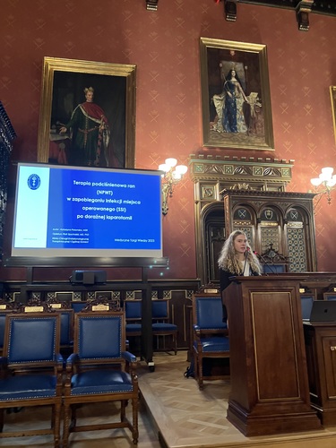 Katarzyna Połomska (3rd year) has won in session Lekarski zabiegowy with the original work Terapia podciśnieniowa ran w zapobieganiu infekcji miejsca operowanego po doraźnej laparotomii (Negative pressure wound therapy for the prevention of surgical site infection after emergency laparotomy). Scientific supervisor of awarded publication was Piotr Spychalski, Ph.D. from the Division of General, Endocrine and Transplant Surgery of the MUG.