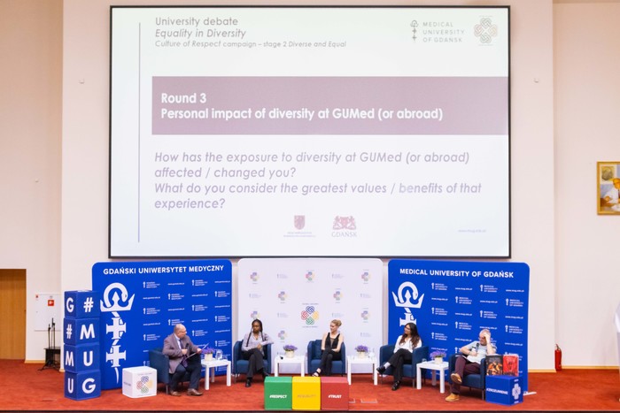 The speakers in the debate were international students and graduates of the Medical University of Gdansk and a special guest – Mr. Andrzej Ziółkowski, Polish traveller and author of photo albums and exhibitions dedicated to religious and spiritual diversity and the human quest for contact with the Sacred. Our University was represented by the following students and alumni: