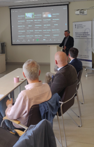 In the second part of the meeting, Prof. Michał Kleiber, Chairman of the Forecasting Committee of the Polish Academy of Sciences and former President of the Polish Academy of Sciences, commented on the lecture. Then the open part of the discussion was joined by the scientists present in person, as well as guests connecting remotely, of whom there were nearly seventy. The following GUMed specialists spoke: Prof. Paweł Zagożdżon – Deputy Dean of the Faculty of Medicine, Head of the Division of Hygiene & Epidemiology with comments from the perspective of a psychiatrist, Prof. Krzysztof Narkiewicz – Head of the Department and Division of Hypertension & Diabetology and leader of PRA 2, who highlighted the risks associated with the use of AI in research, and Prof. Piotr Widłak – Director of the Clinical Research Support Centre Office, who highlighted the potential of AI in clinical research. The meeting concluded with a lively discussion.
