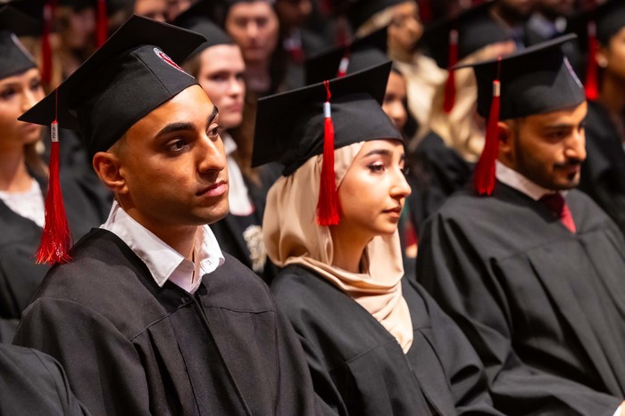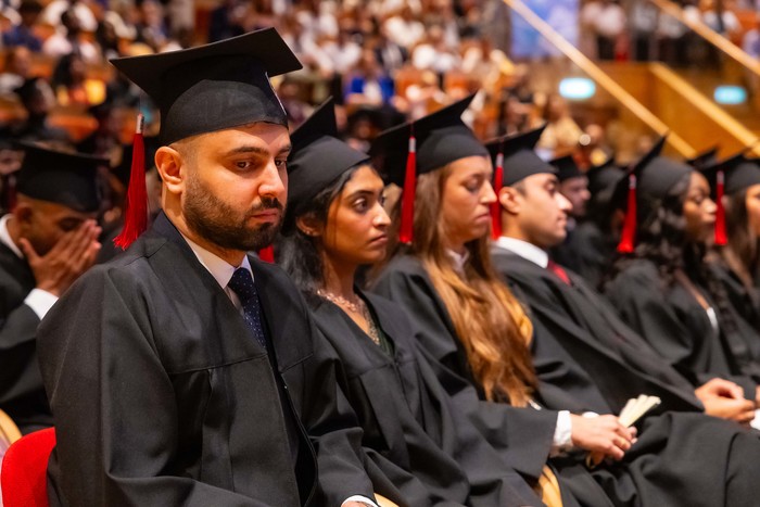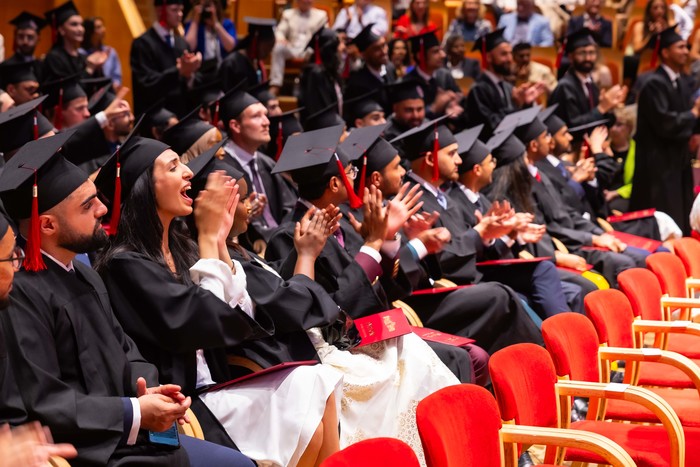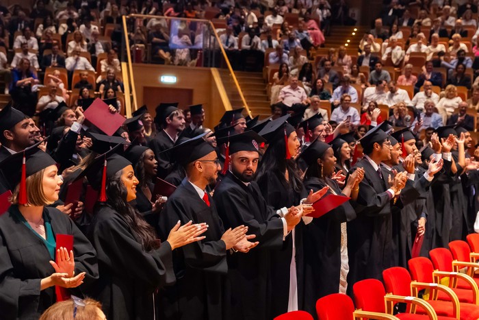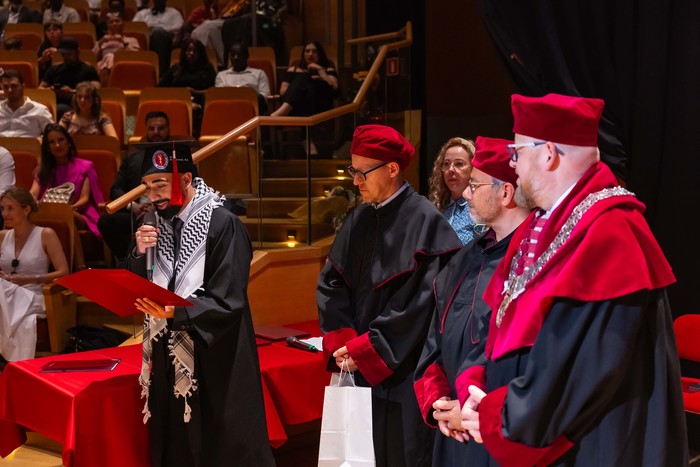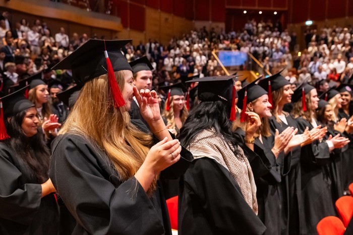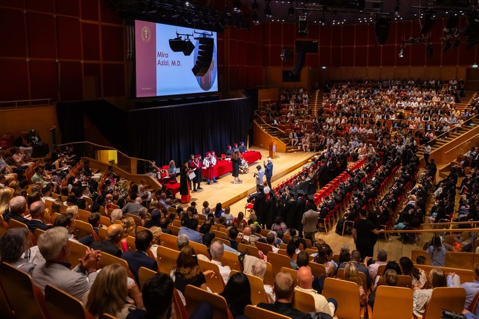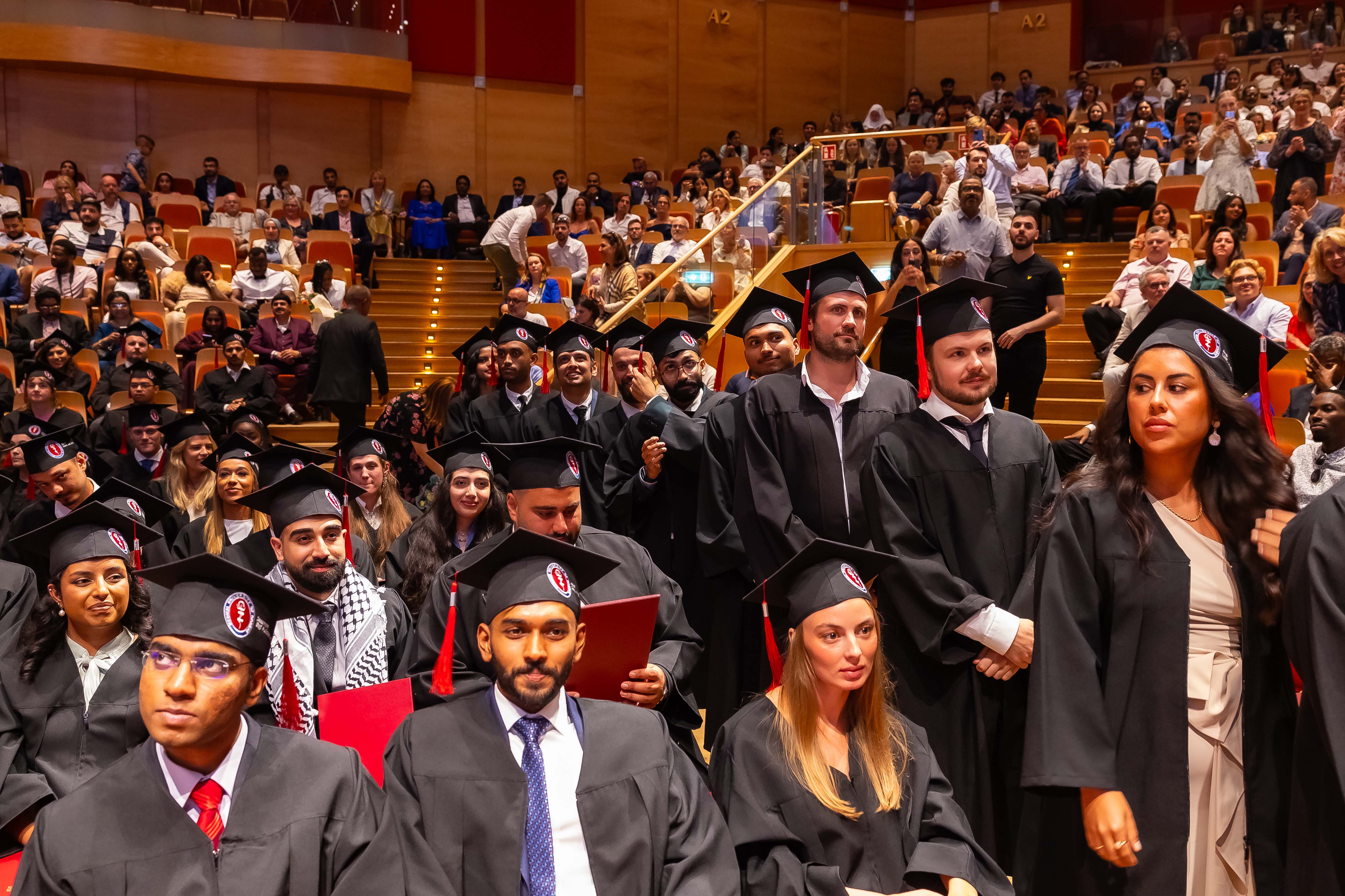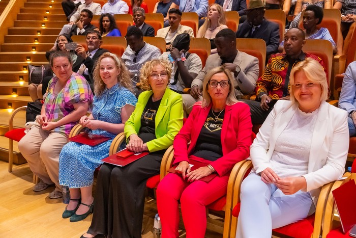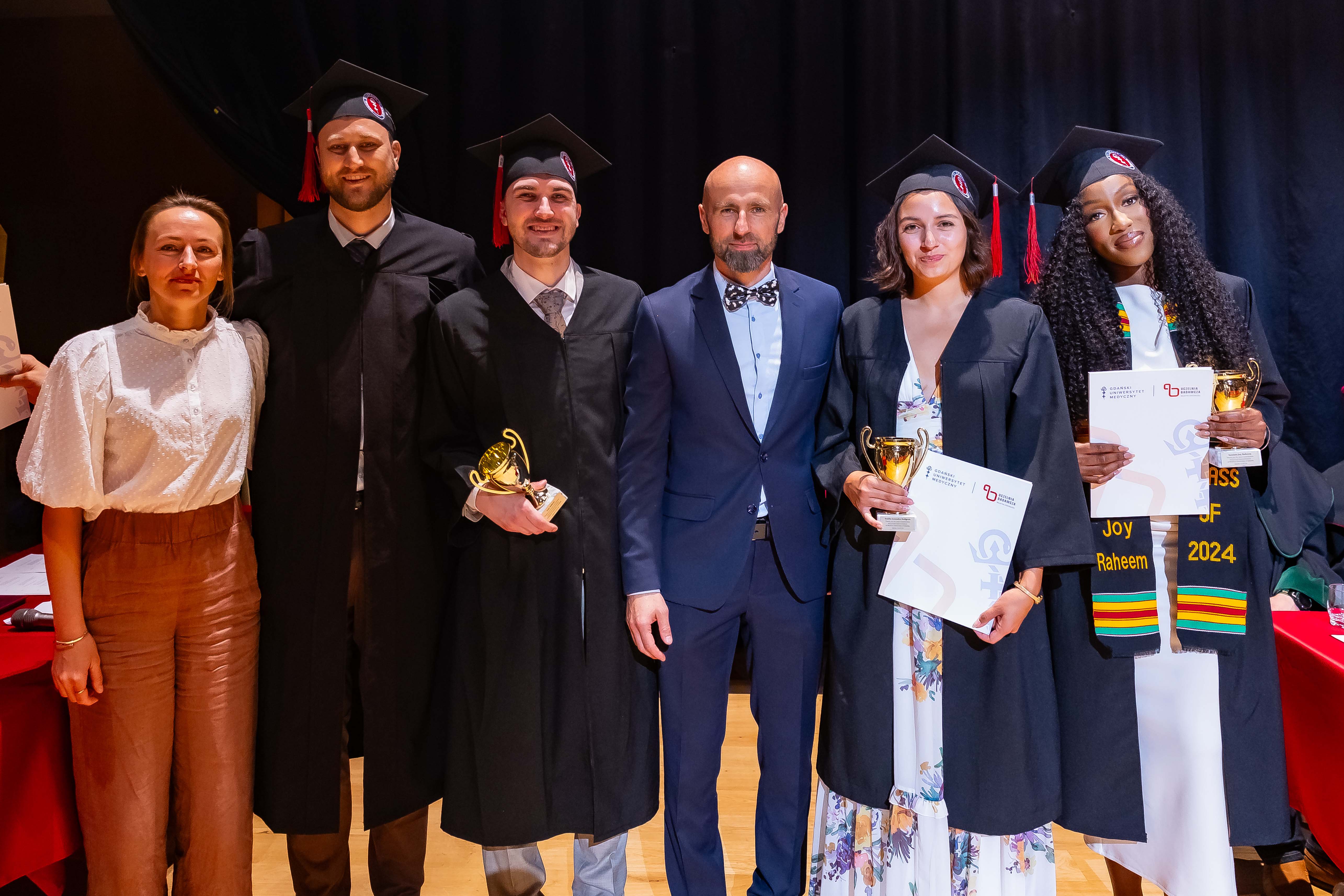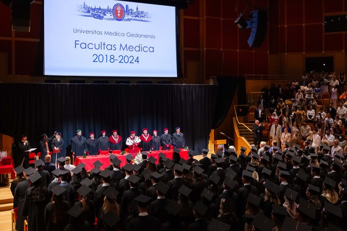 One hundred and forty-four graduates of the Medical Faculty – English Division of the 2018-2024 class received their diplomas. The ceremony, held on 1 July 2024 at the Polish Baltic Philharmonic Fryderyk Chopin in Gdańsk, was attended by the following people behind the presidential table: the Rector of the Medical University of Gdańsk, Prof. Marcin Gruchała, Vice-Rector for Student Affairs, Dr. Habil. Tomasz Smiatacz, the Dean of the Faculty of Medicine, Prof. Radosław Owczuk, Deputy Deans of the Faculty of Medicine: Prof. Ewa Słomińska, Dr. Habil. Maria Bieniaszewska, Prof. Paweł Zagożdżon, Dr. Habil. Kamil Chwojnicki, as well as Prof. Piotr Wąż, Deputy Dean of the Faculty of Health Sciences, and Dr. Habil. Bartosz Wielgomas, Assoc. Prof., Deputy Dean of the Faculty of Pharmacy